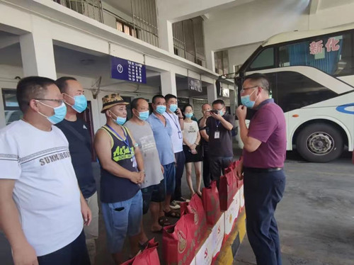 在婁底汽車站,譚主席一行走訪慰問在高溫下堅(jiān)守崗位的一線員工,為他們發(fā)放了夏日清涼慰問品。譚主席親切與員工們交談,對(duì)他們高溫酷暑下工作的堅(jiān)守和付出表示感謝,叮囑他們?cè)谡J(rèn)真工作的同時(shí),要做好防暑降溫,確保身體健康和生產(chǎn)安全,同時(shí)囑咐在場(chǎng)的企業(yè)負(fù)責(zé)人,要合理安排工作和休息時(shí)間,落實(shí)好高溫作業(yè)下的各項(xiàng)保障措施,為員工創(chuàng)造一個(gè)舒適、安全的工作環(huán)境。聽了譚主席的話,在場(chǎng)的員工們深受感動(dòng),紛紛表示,盡管受到高溫天氣和疫情防控的雙重考驗(yàn),但組織的關(guān)心讓大家充滿動(dòng)力和信心,大家一定會(huì)堅(jiān)守崗位,做好本職工作,為疫情防控和交通運(yùn)輸保障做出好的成績。多年來,作為職工的“娘家人”,婁底市總工會(huì)始終關(guān)心關(guān)愛企業(yè)和職工,通過積極開展各類關(guān)愛行動(dòng),傳遞著工會(huì)組織的溫暖,助力企業(yè)發(fā)展。此次來我司開展送清涼慰問活動(dòng),讓酷熱中堅(jiān)守在一線的我司廣大職工感受到工會(huì)“娘家人”的關(guān)心關(guān)愛,極大激發(fā)了大家戰(zhàn)疫情、斗酷暑的工作熱情,激勵(lì)廣大職工為交通事業(yè)發(fā)展做出更大的貢獻(xiàn)。